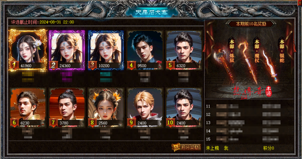 活动期间,参与强化总计可获得超过80000点沙巴克积分!全区排名前十还可获得“本源武器”(根据名次获得的使用权时效不同)。