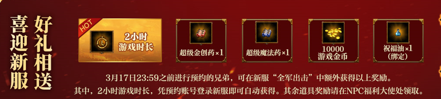 在3月15日23:59前完成预约的玩家,进入新服“全军出击( 怀旧17区)”不仅可以获得“12小时双倍经验卷轴”,还可额外获得以下预约奖励: